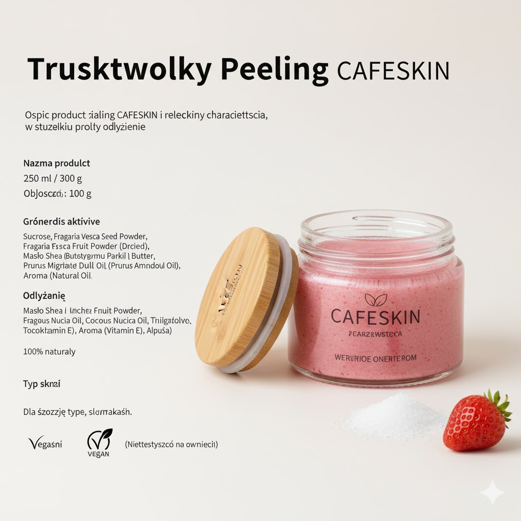 | Nazwa produktu | Truskawkowy Peeling CAFESKIN | Pełna nazwa do oznakowania. |